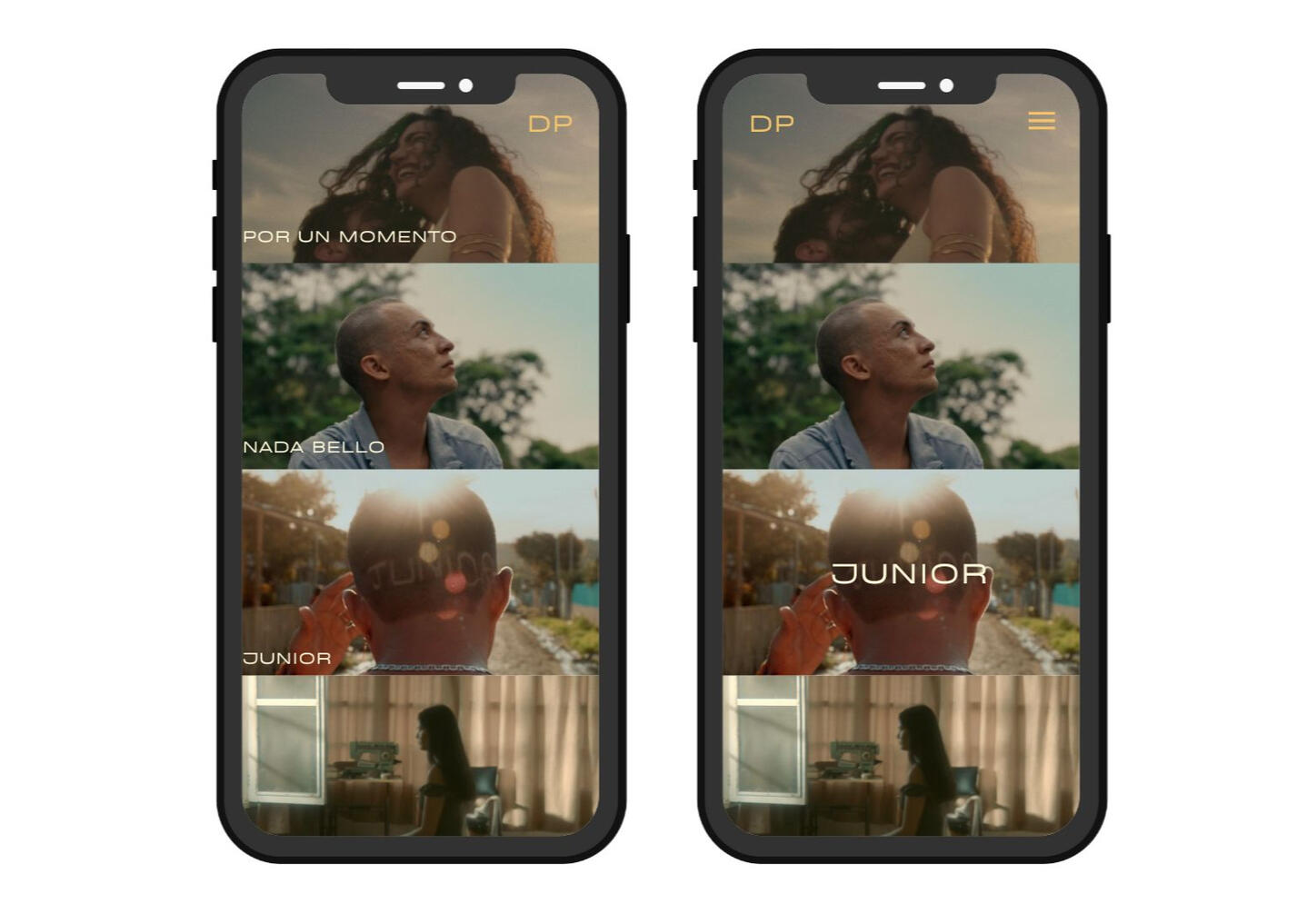 Dominique expresó durante la entrevista una personalidad fuerte pero observadora y sensible a la vez. Basándome en este y otros aprendizajes de su trayectoria y la de sus colegias (durante el análisis de competencia), empecé el proceso de diseño de su portafolio audiovisual, trabajando puntos clave: